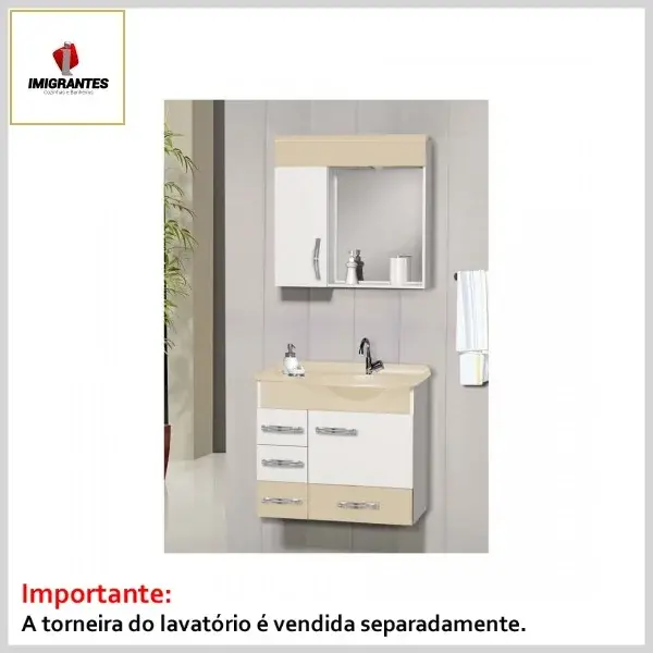 Kit Banheiro Toucador +Espelheira 0.60 Turim Areia - Larg. 60cm (61.0ᴸx30.0ᴾx56.0ᴬcm) - Imigrantes