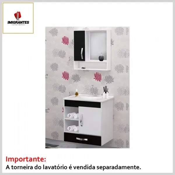 Kit Banheiro Toucador +Espelheira 0.60 Valência Preto - Larg. 60cm (54.0ᴸx37.0ᴾx57.0ᴬcm) - Imigrantes