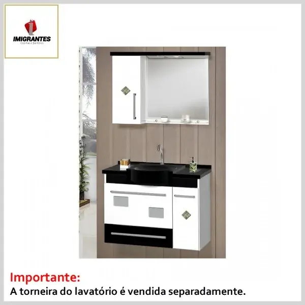 Kit Banheiro Toucador +Espelheira 0.80 Creative Preto - Larg. 80cm (78.5ᴸx38.0ᴾx54.0ᴬcm) - Imigrantes