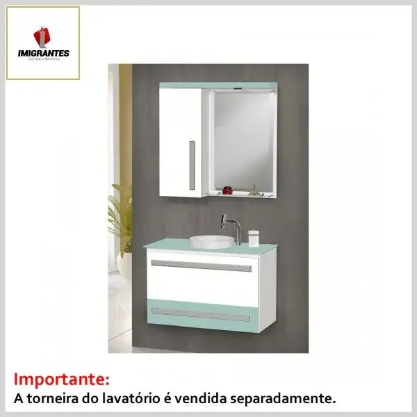 Kit Banheiro Toucador +Espelheira 0.80 Elegance Acqua - Larg. 80cm (76.5ᴸx41.0ᴾx54.0ᴬcm) - Imigrantes