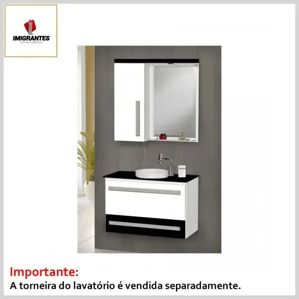 Kit Banheiro Toucador +Espelheira 0.80 Elegance Preto - Larg. 80cm (76.5ᴸx41.0ᴾx54.0ᴬcm) - Imigrantes
