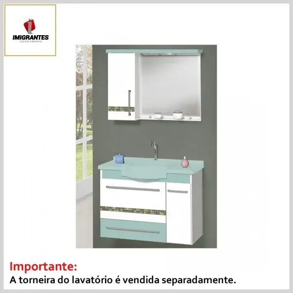 Kit Banheiro Toucador +Espelheira 0.80 Firenze Acqua - Larg. 80cm (78.5ᴸx38.0ᴾx54.0ᴬcm) - Imigrantes