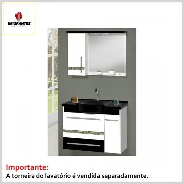 Kit Banheiro Toucador +Espelheira 0.80 Firenze Preto - Larg. 80cm (78.5ᴸx38.0ᴾx54.0ᴬcm) - Imigrantes