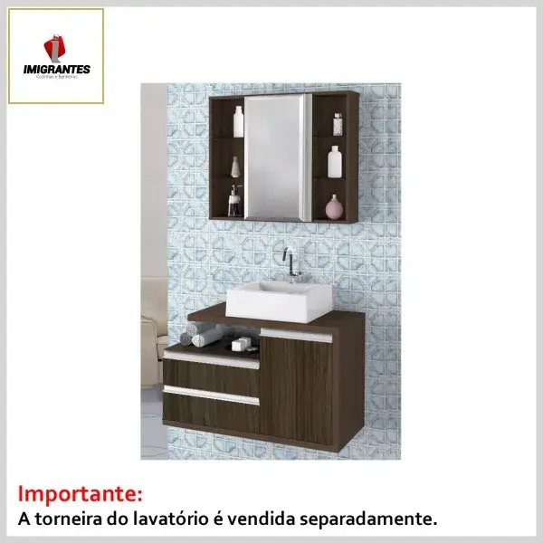 Kit Banheiro Toucador +Espelheira 0.80 Gold Larnaca - Larg. 80cm (80.0ᴸx40.0ᴾx50.0ᴬcm) - Imigrantes