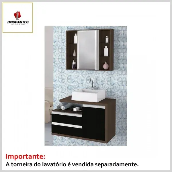 Kit Banheiro Toucador +Espelheira 0.80 Gold Preto - Larg. 80cm (80.0ᴸx40.0ᴾx50.0ᴬcm) - Imigrantes