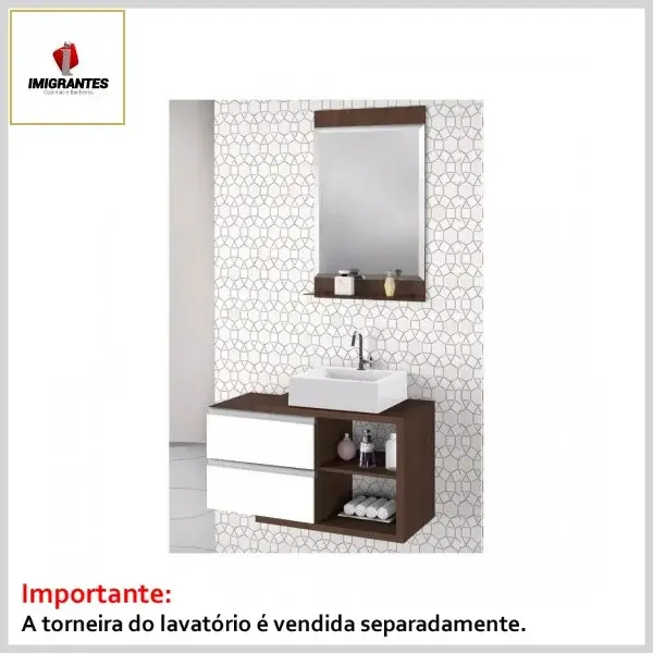 Kit Banheiro Toucador +Espelheira 0.80 Life Branco - Larg. 80cm (79.5ᴸx40.0ᴾx45.0ᴬcm) - Imigrantes