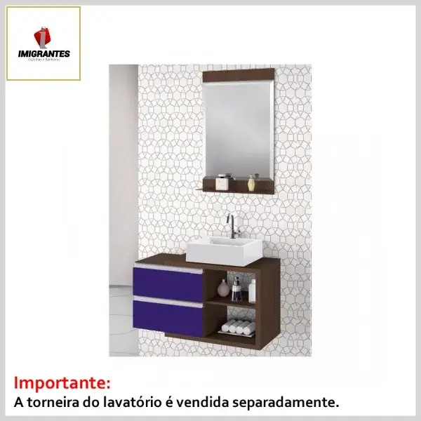 Kit Banheiro Toucador +Espelheira 0.80 Life Roxo - Larg. 80cm (79.5ᴸx40.0ᴾx45.0ᴬcm) - Imigrantes