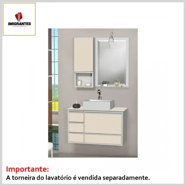 Kit Banheiro Toucador +Espelheira 0.80 Mônaco Areia - Larg. 80cm (76.5ᴸx41.0ᴾx47.0ᴬcm) - Imigrantes