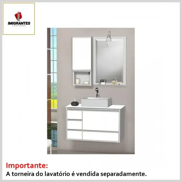 Kit Banheiro Toucador +Espelheira 0.80 Mônaco Branco - Larg. 80cm (76.5ᴸx41.0ᴾx47.0ᴬcm) - Imigrantes