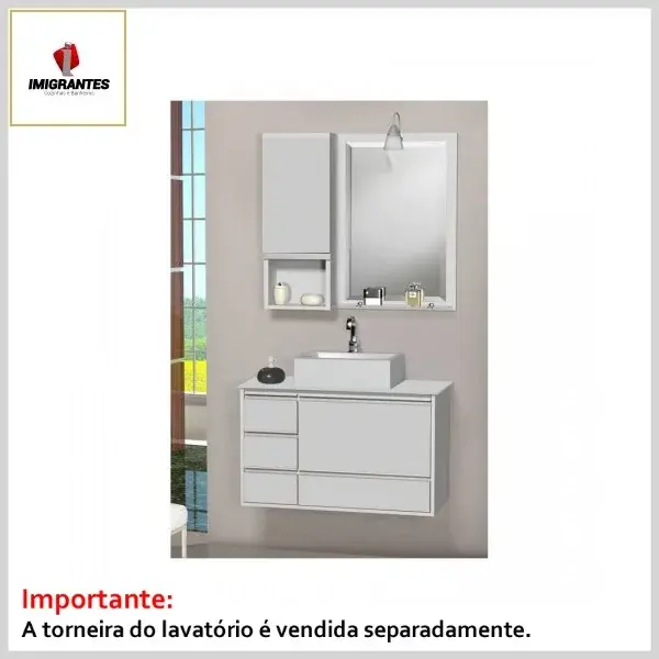 Kit Banheiro Toucador +Espelheira 0.80 Mônaco Cinza - Larg. 80cm (76.5ᴸx41.0ᴾx47.0ᴬcm) - Imigrantes
