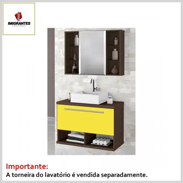 Kit Banheiro Toucador +Espelheira 0.80 Pérola Amarelo - Larg. 80cm (80.0ᴸx42.0ᴾx56.5ᴬcm) - Imigrantes