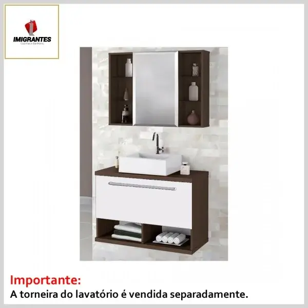 Kit Banheiro Toucador +Espelheira 0.80 Pérola Branco - Larg. 80cm (80.0ᴸx42.0ᴾx56.5ᴬcm) - Imigrantes