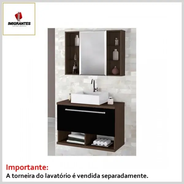Kit Banheiro Toucador +Espelheira 0.80 Pérola Preto - Larg. 80cm (80.0ᴸx42.0ᴾx56.5ᴬcm) - Imigrantes