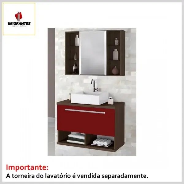 Kit Banheiro Toucador +Espelheira 0.80 Pérola Vermelho - Larg. 80cm (80.0ᴸx42.0ᴾx56.5ᴬcm) - Imigrantes