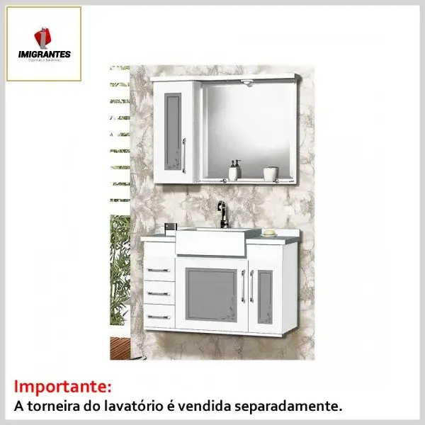 Kit Banheiro Toucador +Espelheira 0.80 Rekynte Branco - Larg. 80cm (79.5ᴸx32.0ᴾx56.0ᴬcm) - Imigrantes