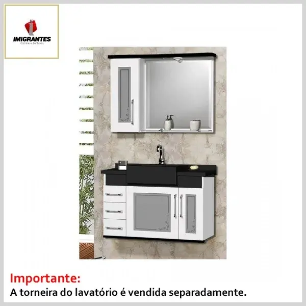 Kit Banheiro Toucador +Espelheira 0.80 Rekynte Preto - Larg. 80cm (79.5ᴸx32.0ᴾx56.0ᴬcm) - Imigrantes