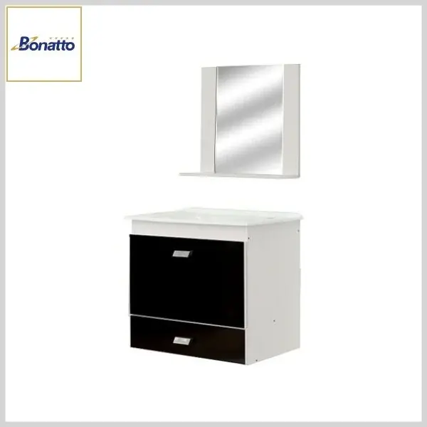 Kit Banheiro Toucador +Espelheira Belmonte Branco c/Preto - Larg. 50cm (47.0ᴸx31.0ᴾx51.5ᴬcm) - Bonatto