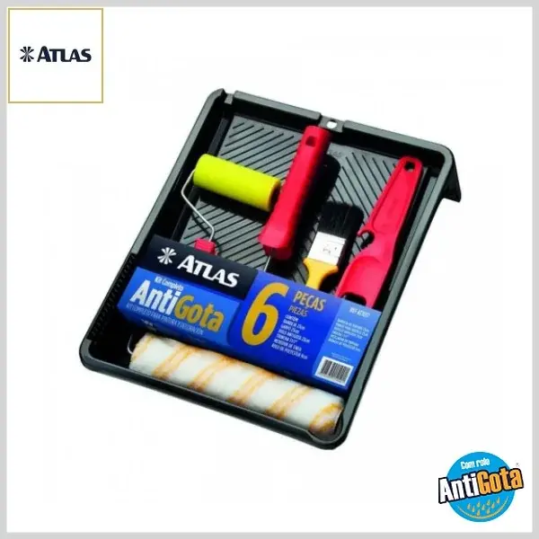 Kit de Pintura AT1017 Antigota 6pç (1Bandeja+2Garfos/Rolos+1Trincha) - Pack c/6 un - Atlas