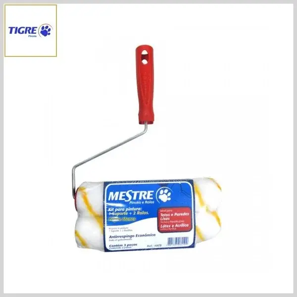 Kit de Pintura Ref.1573 (1Suporte +2Rolos 1376) Lã Sintética Antirrespingo - Largura: 23cm (Altura da Lã: 09mm) - Tigre Pincéis