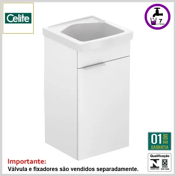 Kit Gabinete+Tanque de Roupas PP 7lts Louça Esmaltada - Branco - Celite