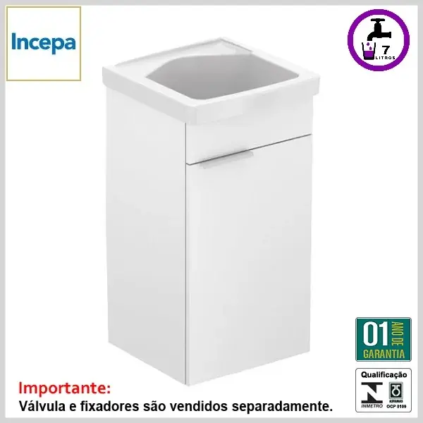 Kit Gabinete+Tanque de Roupas PP 7lts Louça Esmaltada - Branco - Incepa