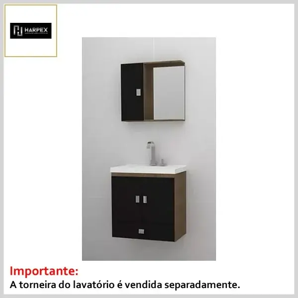 O produto é indicado para mobiliário de banheiros e lavabos. Produzido em Mdp dupla face de baixa pressão, possui dobradiças metálicas, puxadores em Abs, espelho e armário lateral que acompanham o conjunto.