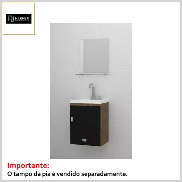 Kit Toucador Mdp +Espelho/Prateleira/Tampo 040 Ametista Carvalho e Preto - Largura do Gabinete: 40 cm - Harpex
