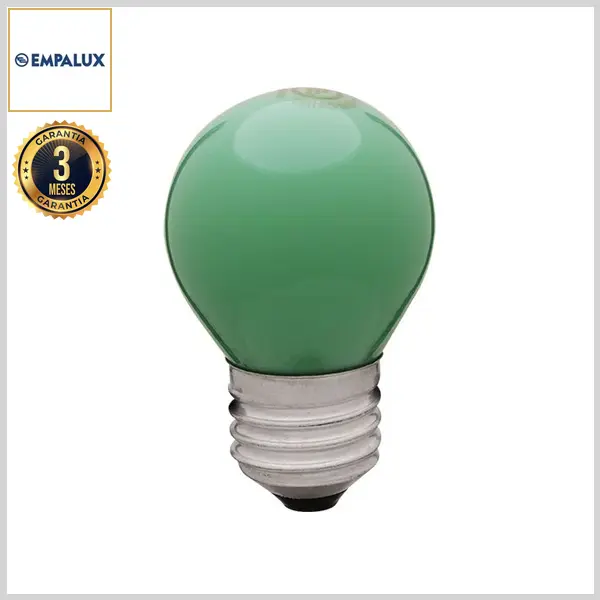 Lâmpada Incandescente Bolinha 15Watts (Luz Verde Suave) - Base E27 - 127 Volts - Empalux
