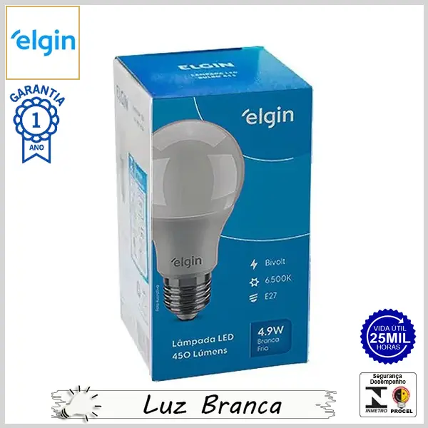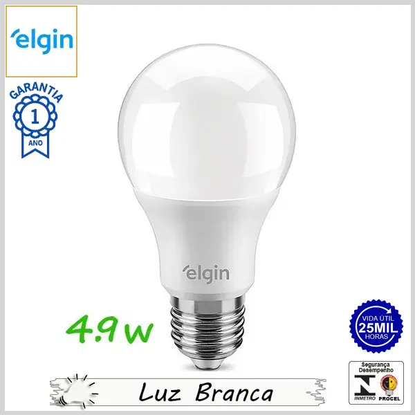 Lâmpada Led E27 BulboA 4.9Wx6500K (Luz Branca) - Bivolt (A55) - 450 lumens - Elgin