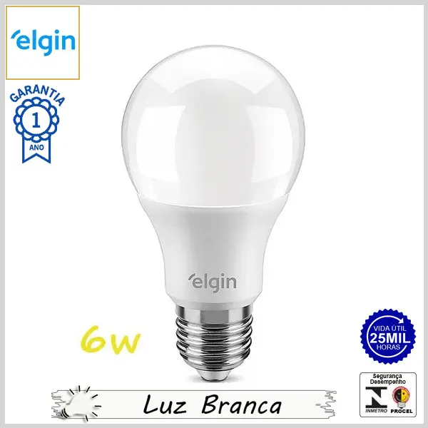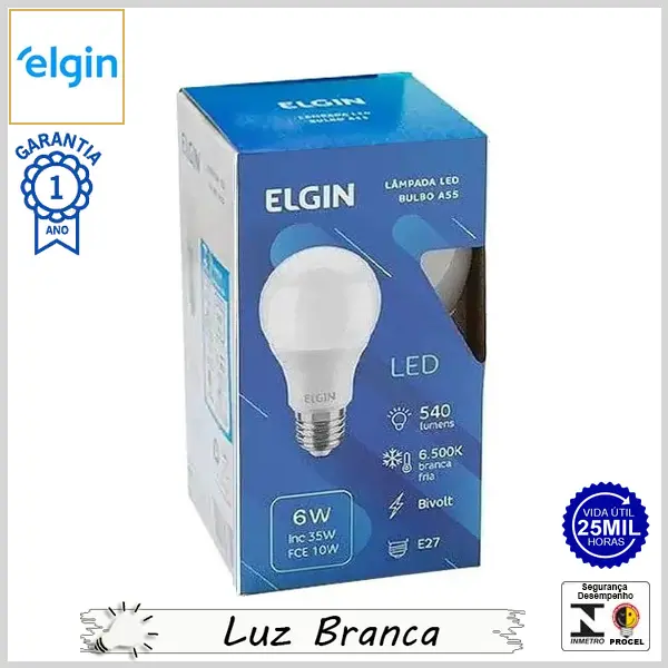 Lâmpada Led E27 BulboA 6.0Wx6500K (Luz Branca) - Bivolt (A55) - 540 lumens - Elgin