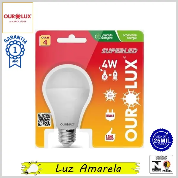 Lâmpada Led E27 BulboA SuperLed Ouro 4.0Wx2700K (Luz Amarela) - Bivolt (A55) - 302 lumens - Ourolux