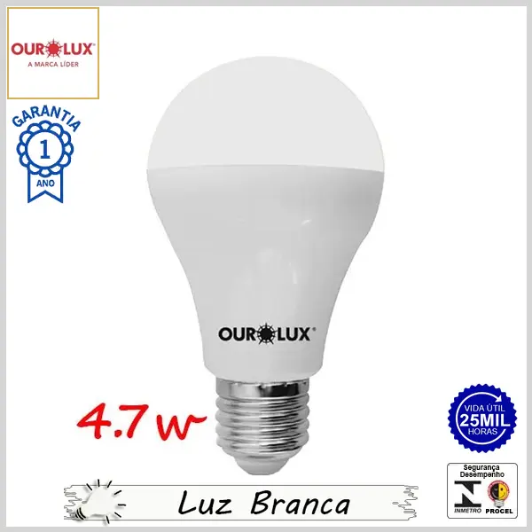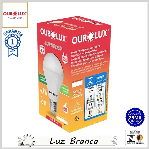 Lâmpada Led E27 BulboA SuperLed Ouro 4.7Wx6500K (Luz Branca) - Bivolt (A55) - 302 lumens - Ourolux