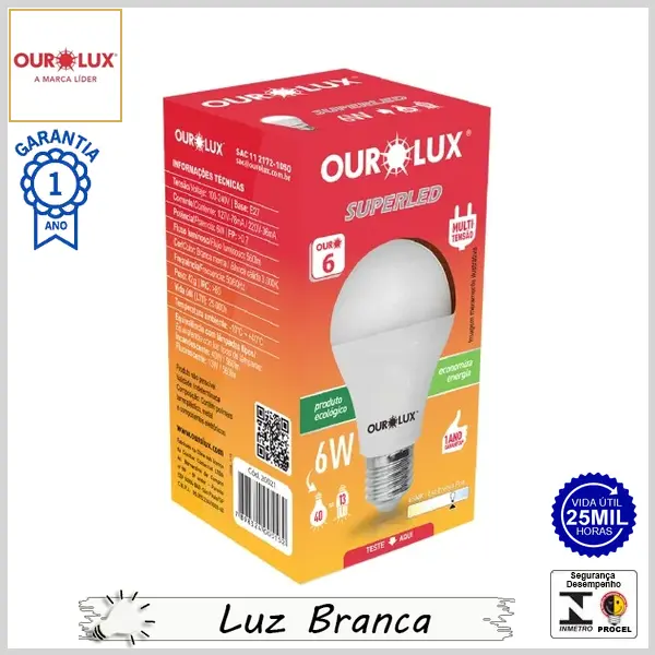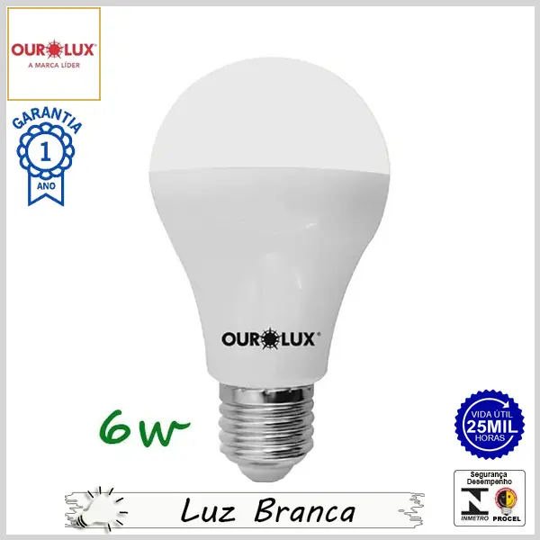 Lâmpada Led E27 BulboA SuperLed Ouro 6.0Wx6500K (Luz Branca) - Bivolt (A55) - 560 lumens - Ourolux
