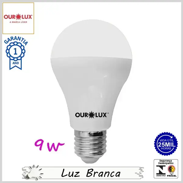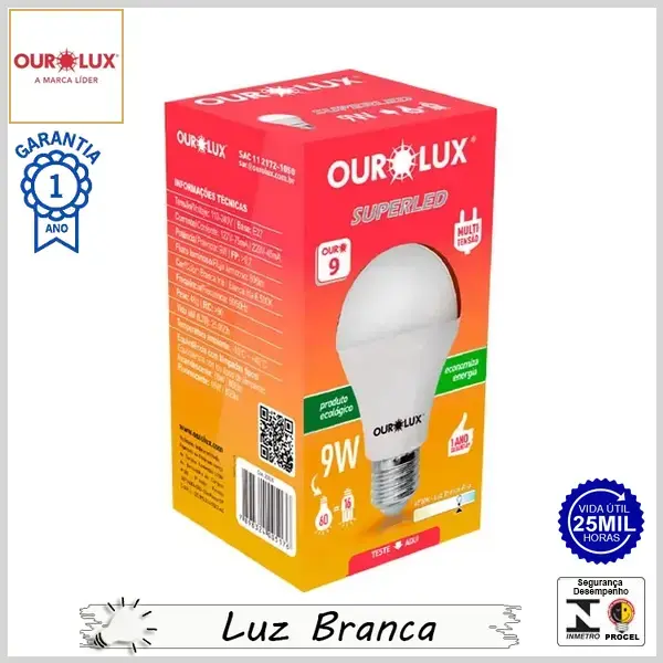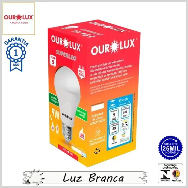 Lâmpada Led E27 BulboA SuperLed Ouro 9.0Wx6500K (Luz Branca) - Bivolt (A60) - 806 lumens - Ourolux