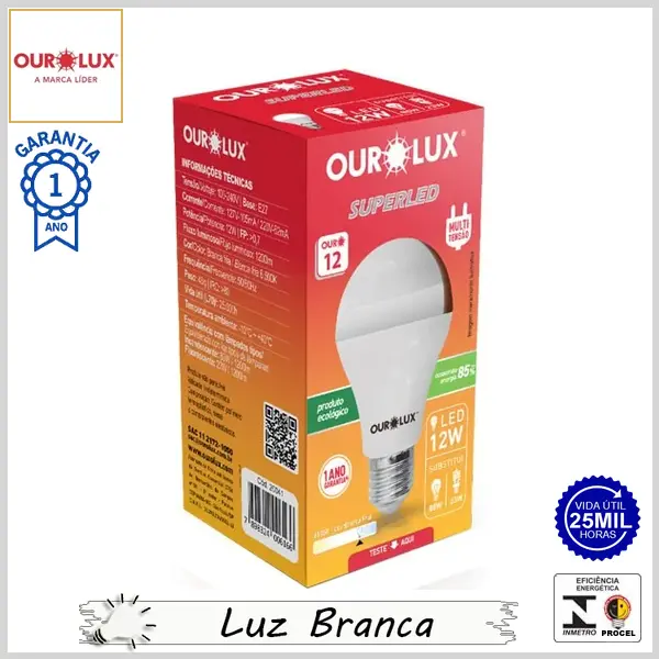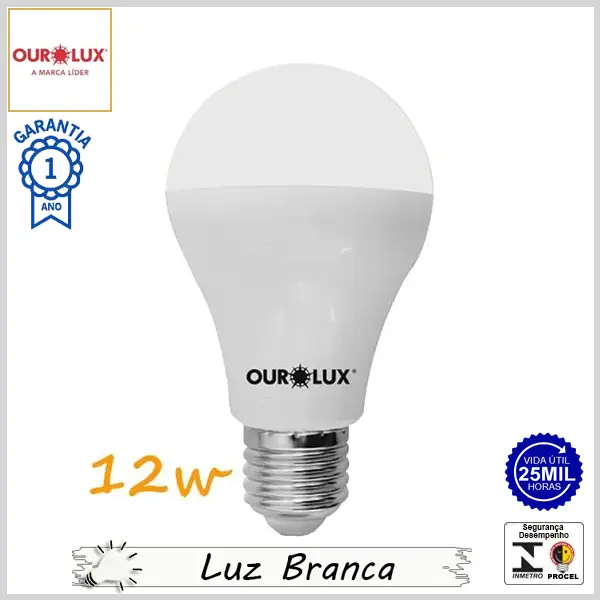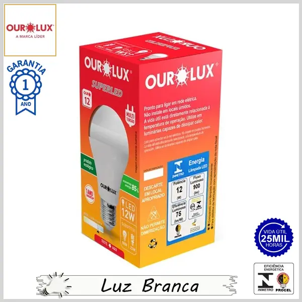 Lâmpada Led E27 BulboA SuperLed Ouro 12Wx6500K (Luz Branca) - Bivolt (A60) - 900 lumens - Ourolux
