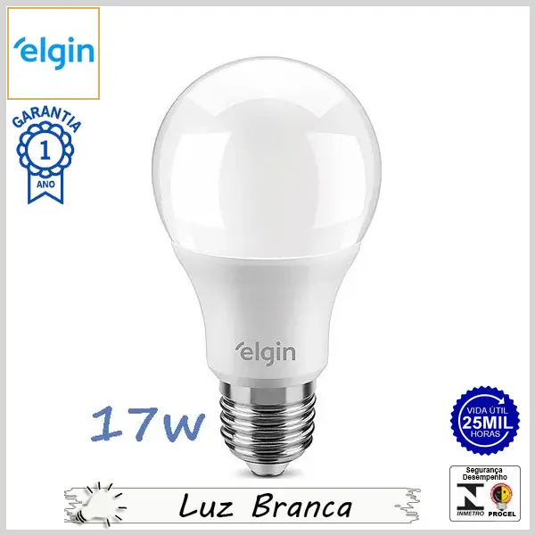 Lâmpada Led E27 BulboA 17Wx6500K (Luz Branca) - Bivolt (A60) - 1507 lumens - Elgin