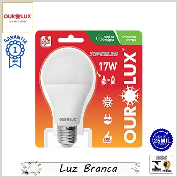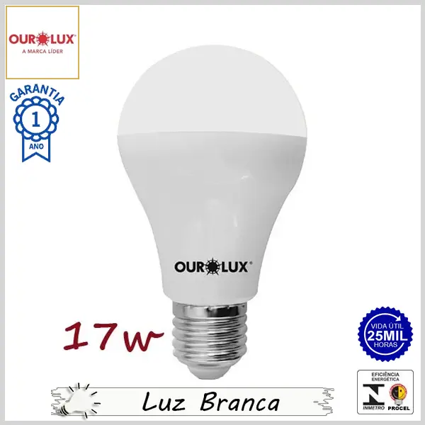 Lâmpada Led E27 BulboA AltaPotência 17Wx6500K (Luz Branca) - Bivolt (A75) - 1400 lumens - Ourolux