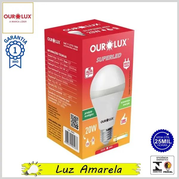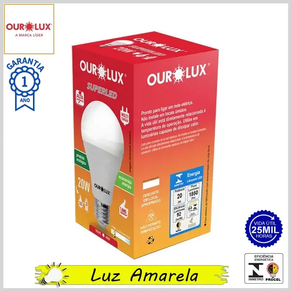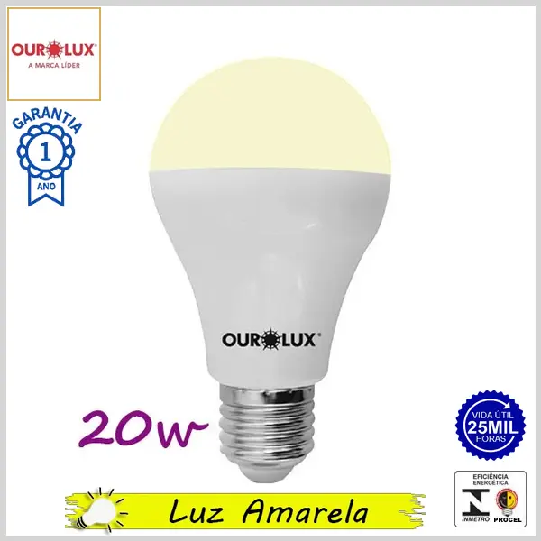 Lâmpada Led E27 BulboA AltaPotência 20Wx3000K (Luz Amarela) - Bivolt (A80) - 1850 lumens - Ourolux