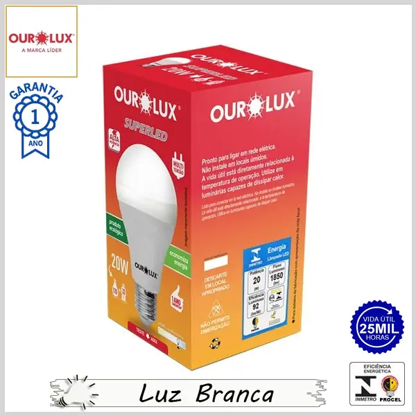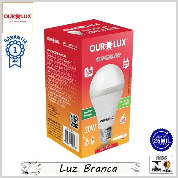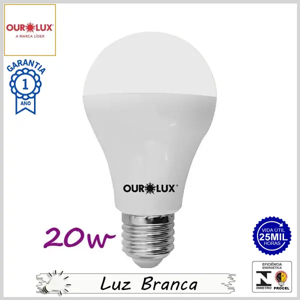 Lâmpada Led E27 BulboA AltaPotência 20Wx6500K (Luz Branca) - Bivolt (A80) - 1850 lumens - Ourolux