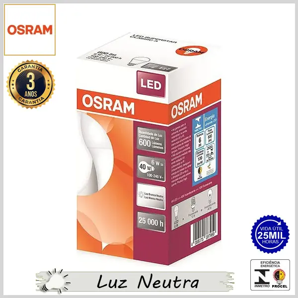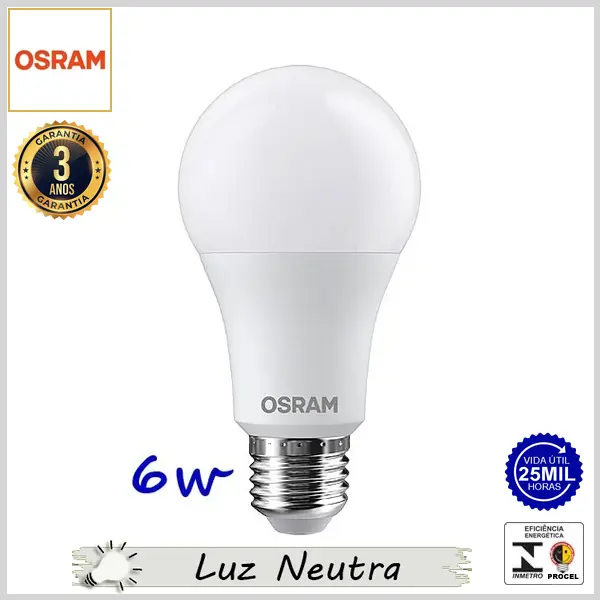 Lâmpada Led E27 BulboA ClassicLed 6.0Wx4000K (Luz Neutra) - Bivolt (A55) - 600 lumens - Osram