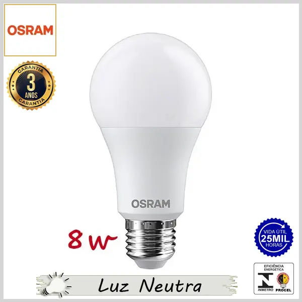 Lâmpada Led E27 BulboA ClassicLed 8.0Wx4000K (Luz Neutra) - Bivolt (A60) - 806 lumens - Osram