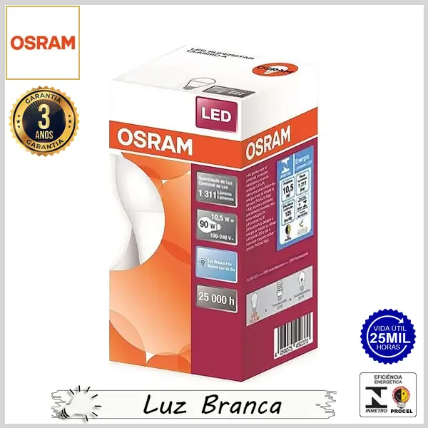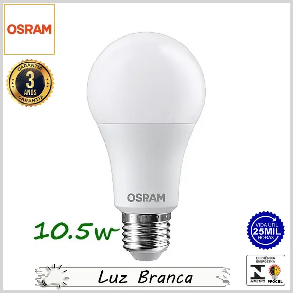 Lâmpada Led E27 BulboA ClassicLed 10.5Wx6500K (Luz Branca) - Bivolt (A60) - 1311 lumens - Osram