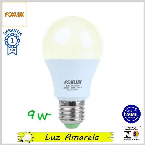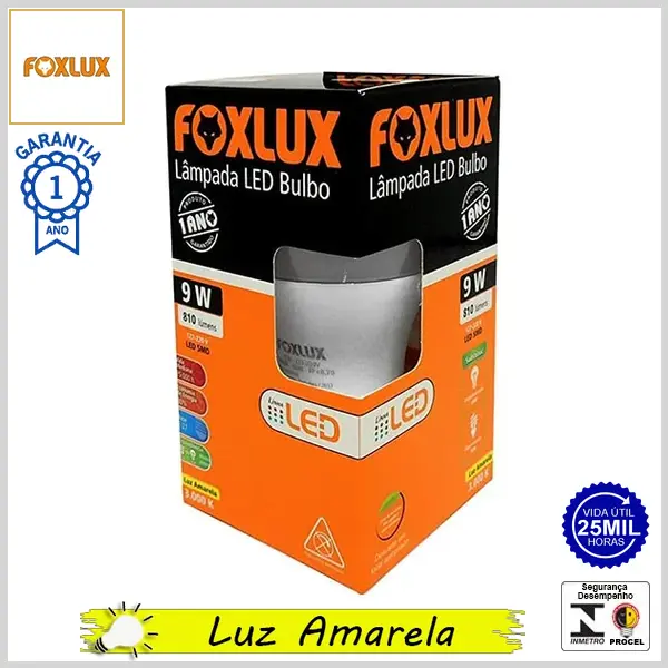 Lâmpada Led E27 BulboA FoxLed 9.0Wx3000K (Luz Amarela) - Bivolt (A60) - 810 lumens - Foxlux