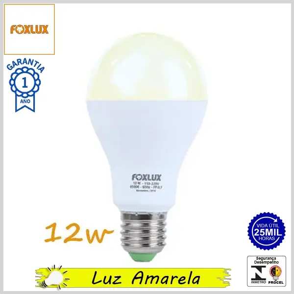 Lâmpada Led E27 BulboA FoxLed 12Wx3000K (Luz Amarela) - Bivolt (A60) - 1080 lumens - Foxlux