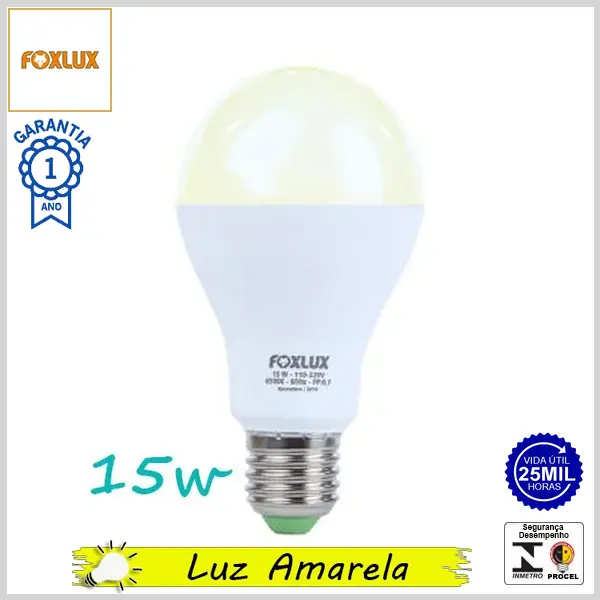 Lâmpada Led E27 BulboA FoxLed 15Wx3000K (Luz Amarela) - Bivolt (A60) - 1350 lumens - Foxlux