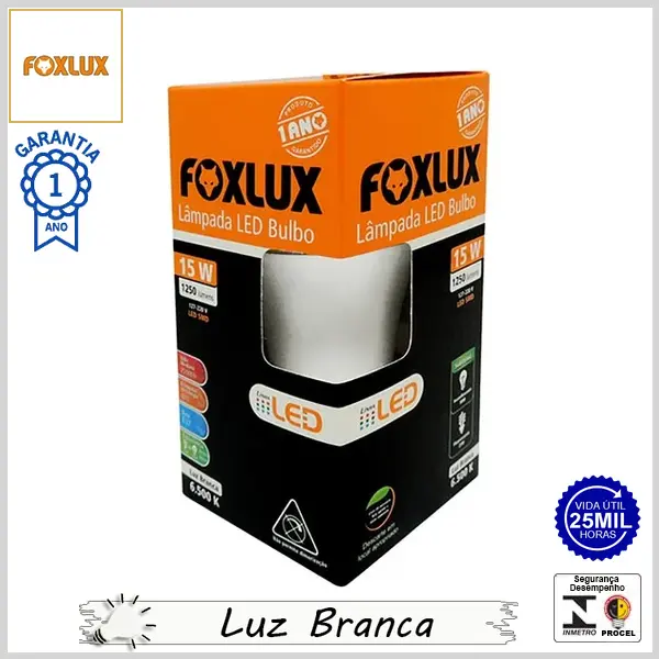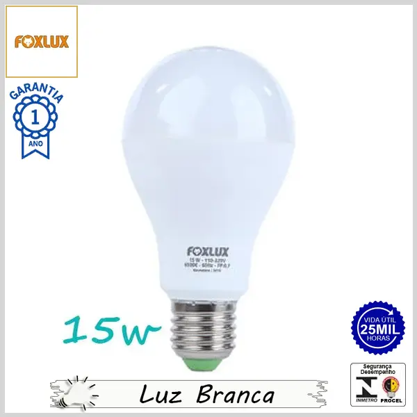 Lâmpada Led E27 BulboA FoxLed 15Wx6500K (Luz Branca) - Bivolt (A60) - 1250 lumens - Foxlux