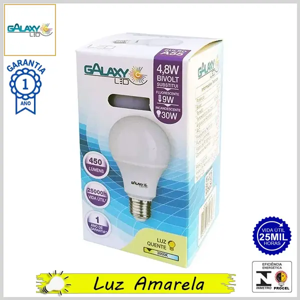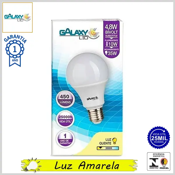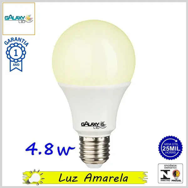 Lâmpada Led E27 BulboA LineLed 4.8Wx3000K (Luz Amarela) - Bivolt (A55) - 450 lumens - Galaxy