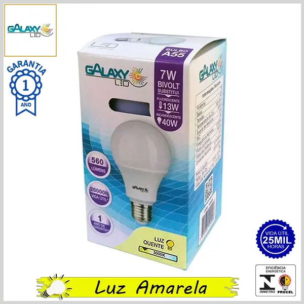 Lâmpada Led E27 BulboA LineLed 7.0Wx3000K (Luz Amarela) - Bivolt (A55) - 560 lumens - Galaxy