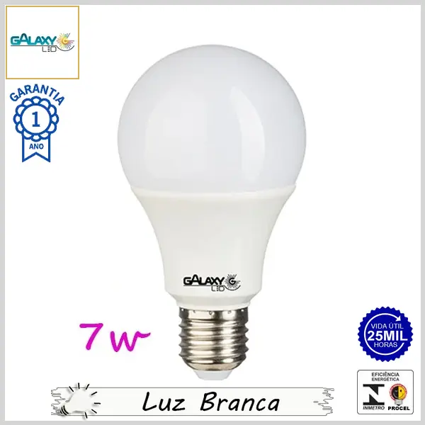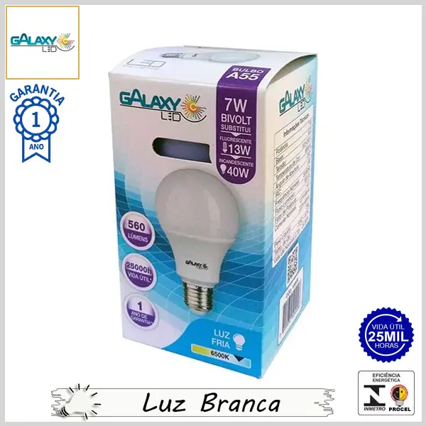 Lâmpada Led E27 BulboA LineLed 7.0Wx6500K (Luz Branca) - Bivolt (A55) - 560 lumens - Galaxy