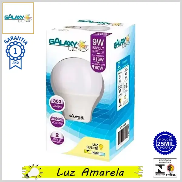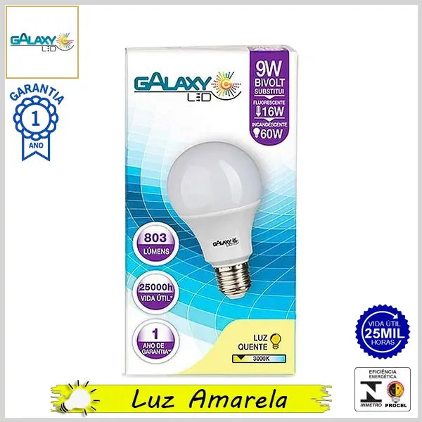 Lâmpada Led E27 BulboA LineLed 9.0Wx3000K (Luz Amarela) - Bivolt (A60) - 803 lumens - Galaxy